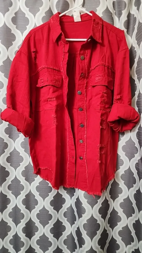 Este casaco denim rasgado e desgastado traz uma ousadia única ao seu guarda-roupa casual. Com uma modelagem boyfriend, ele oferece conforto e descontração para qualquer ocasião. Os botões frontais tornam o vestir uma tarefa fácil, enquanto adicionam um charme extra ao design.